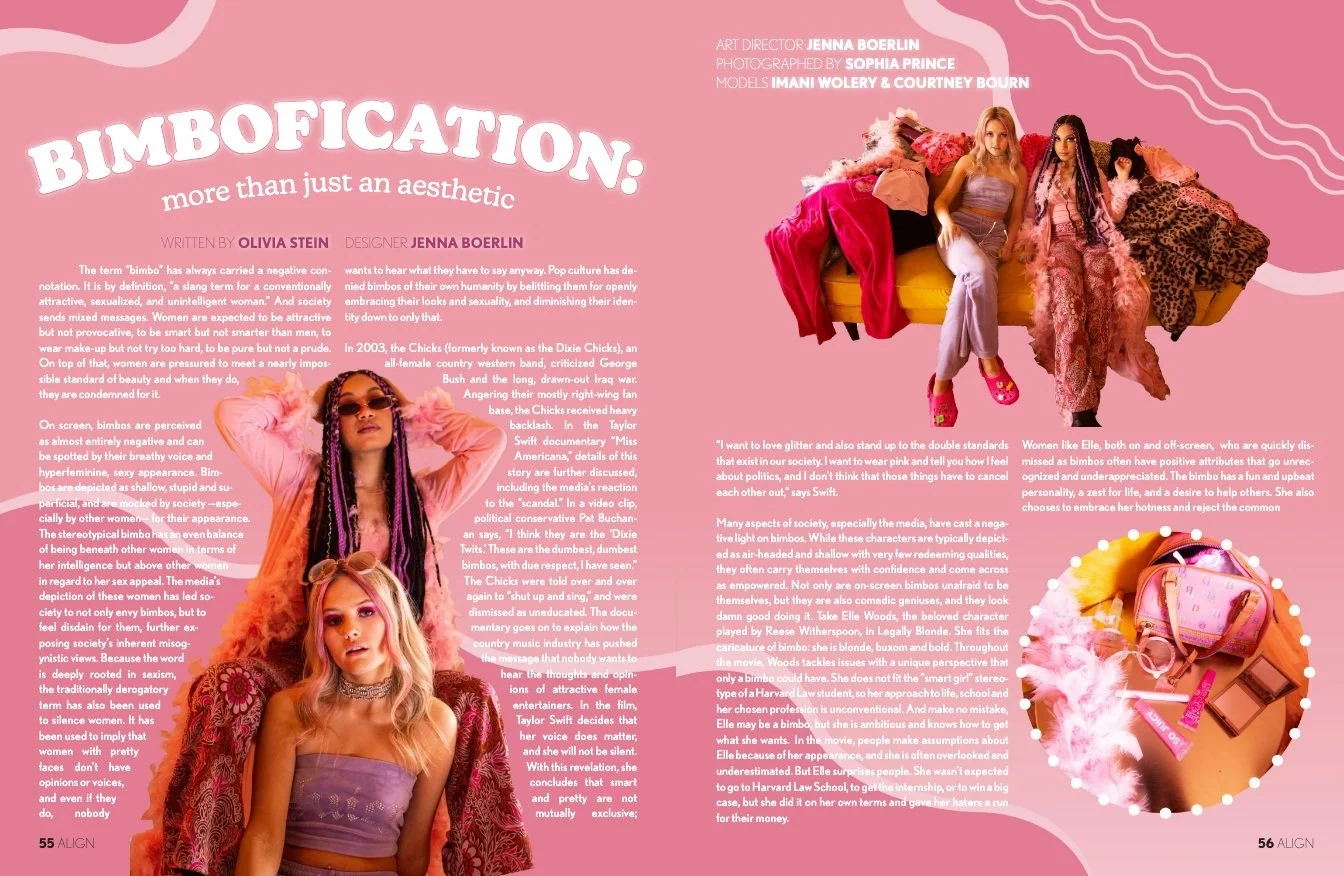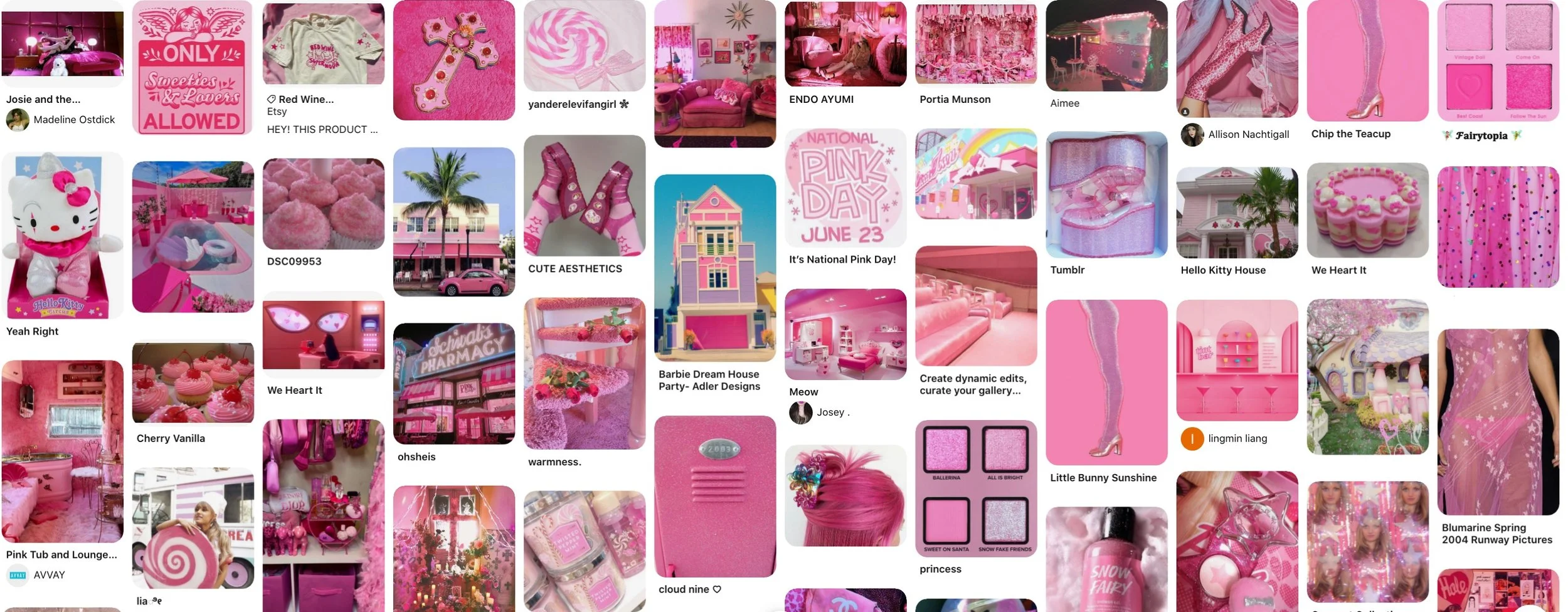 "Think Pink" - Bright, hot pinks serving bubblegum, doll-like motifs.