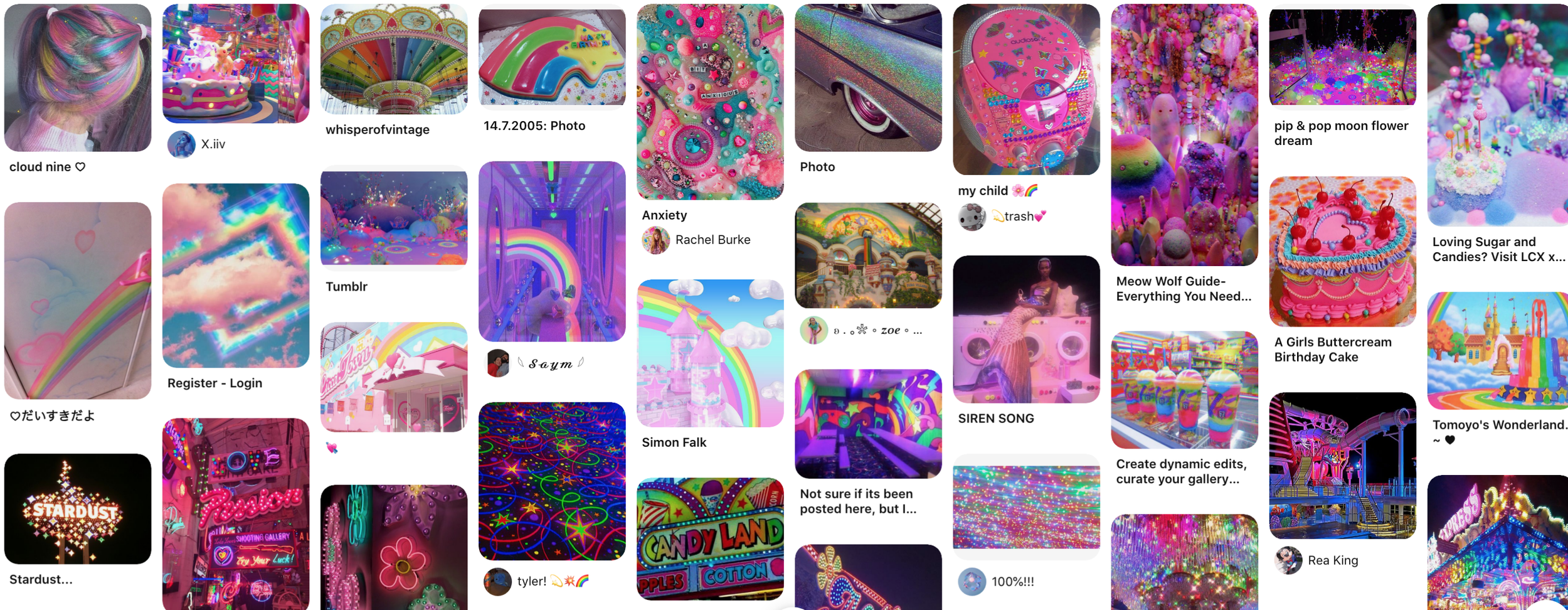 "Sensory Overload" - Neon, rainbow, carnival-esque images evoking the feeling of overstimulation.